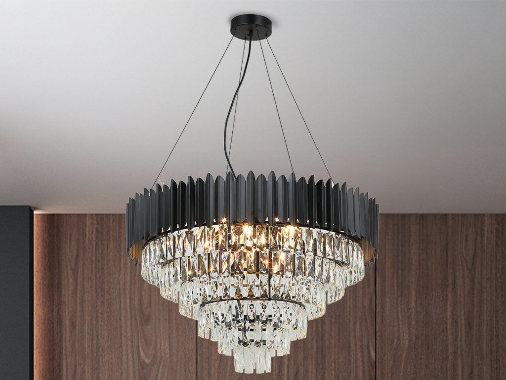 Toto výnimočné svietidlo spája moderný štýl s precíznym remeselným spracovaním. Telo svietidla je vyrobené z kvalitného kovu v elegantnom odtieni čiernej farby, pričom jeho povrch je bohato zdobený jemne brúsenými kryštálmi, ktoré nádherne lámu svetlo a vytvárajú jedinečný svetelný efekt.
