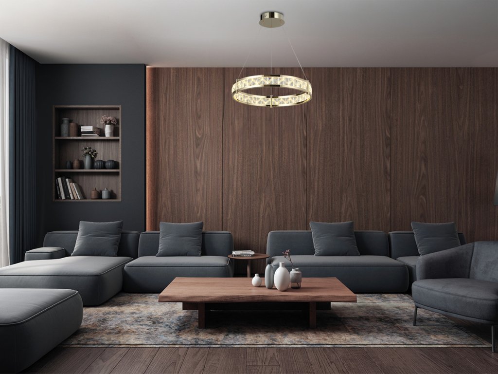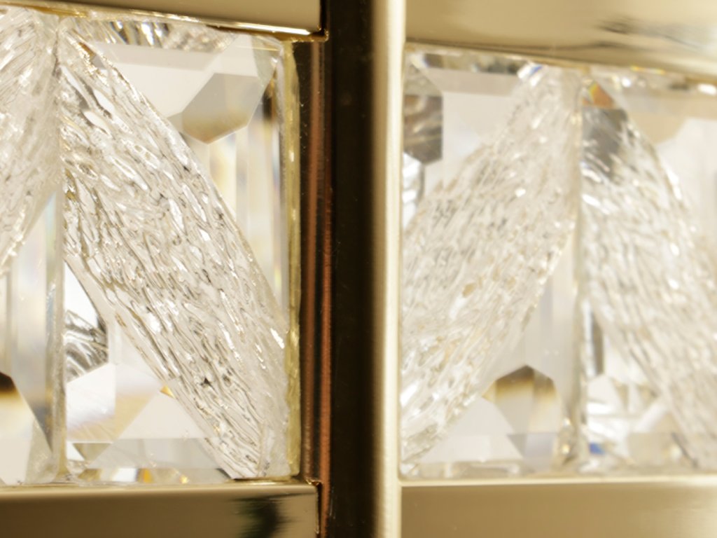 Prémiové materiály – kombinácia lesklej kovovej konštrukcie a brúsených krištáľov vytvára luxusný a sofistikovaný vzhľad.