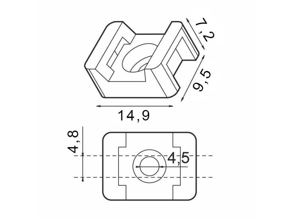 Káblové sedlo na viazaciu pásku max 4,8mm, značky NEDES, v čiernom farebnom prevedení je vhodný ako príslušenstvo k viazacím páskam.