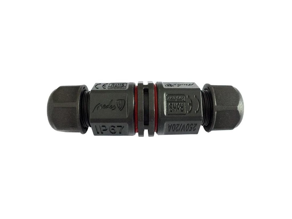 Konektor IP67/2way značky NEDES, je ideálny na spájanie káblov vo vonkajšom prostredí, príp. v zemi do hĺbky 1m.