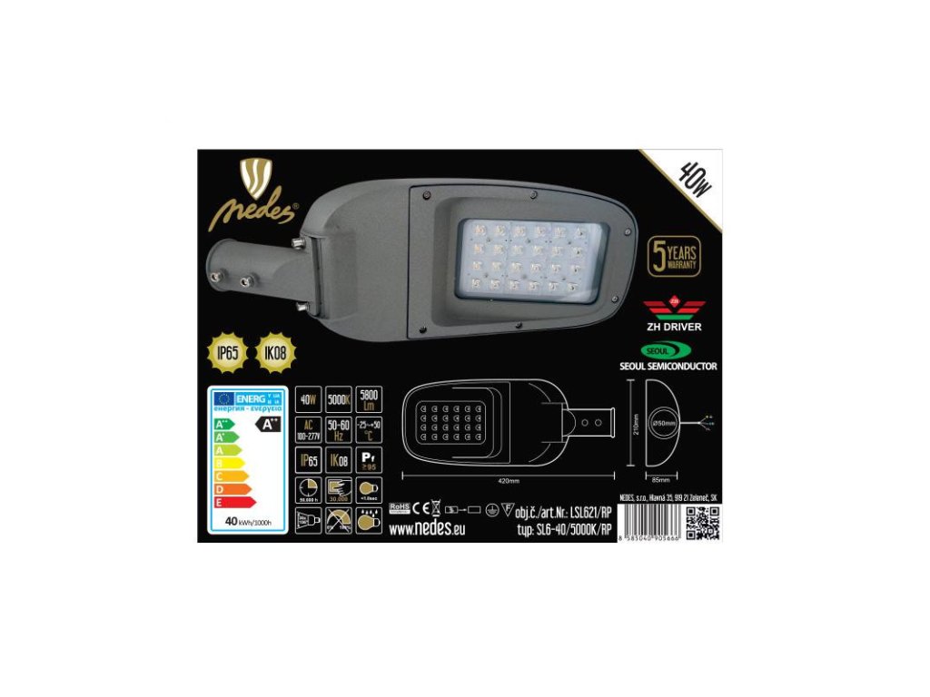 LED pouličné svietidlo na prechod pravé 40W / 5000K - LSL621/RP
