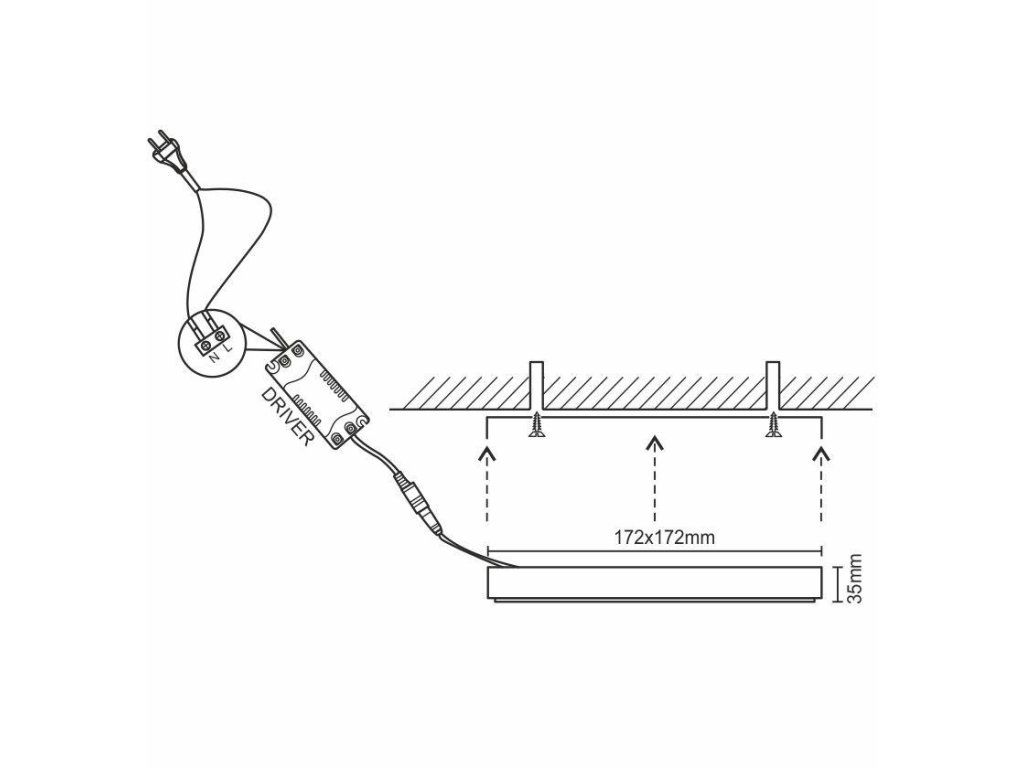 Panel je prispôsobený pre montáž priamo na stenu alebo strop.