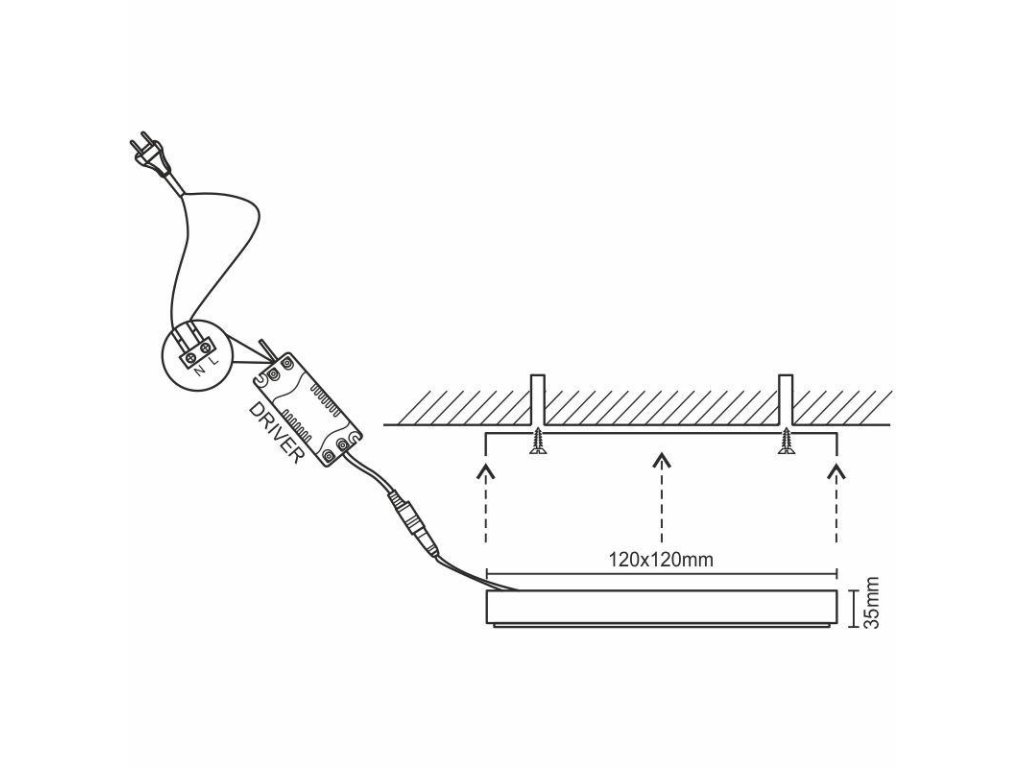 Panel je prispôsobený pre montáž priamo na stenu alebo strop.