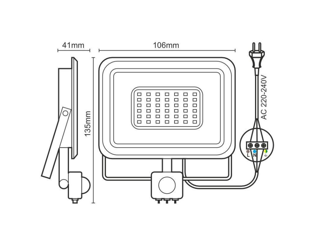 LED reflektor LF0021S v čiernej farbe, s výkonom 10W, svietivosťou 800Lm a farbou svetla 4000K disponuje držiakom, senzorom a vysokokvalitným LED čipom.