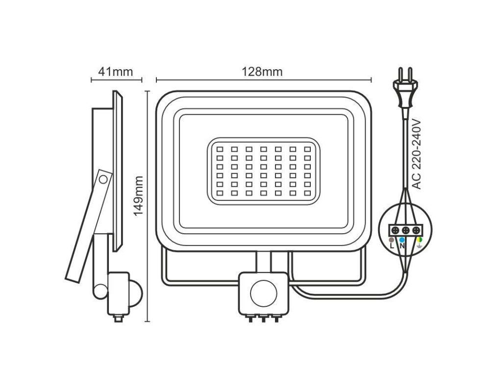 LED reflektor LF0022S v čiernej farbe, s výkonom 20W, svietivosťou 1600Lm a farbou svetla 4000K disponuje držiakom, senzorom a vysokokvalitným LED čipom.
