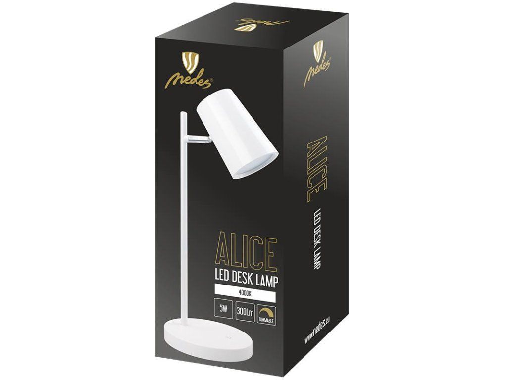 LED stolná lampa ALICE značky NEDES, ponúka kvalitné LED svetlo, vhodné pre detskú izbu, kanceláriu, či pracovňu. Táto dizajnová stolná LED lampička poskytuje najkvalitnejšie osvetlenie v neutrálnej bielej farbe.