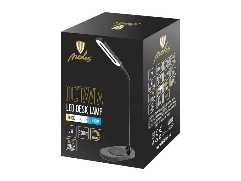 LED stolná lampa OCTAVIA 7W stmievateľná s bezdrôtovým nabíjaním - DL4301/B