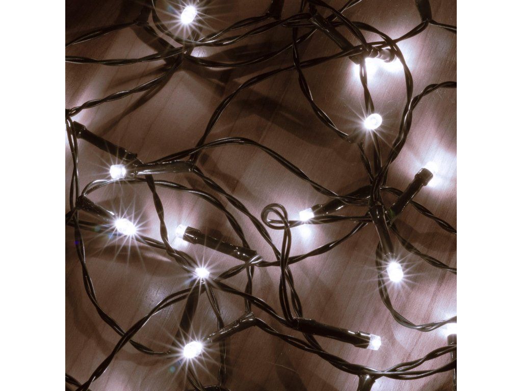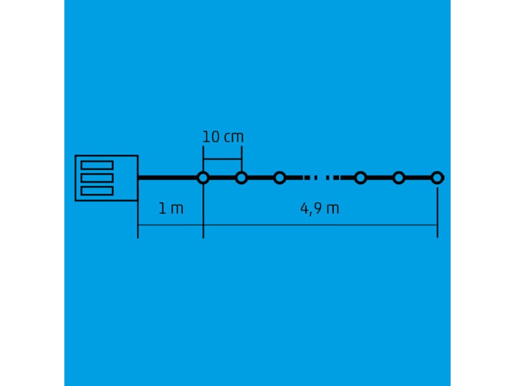 LED svietiaci reťazec, 50 LED, studená biela, s časovačom, IP44