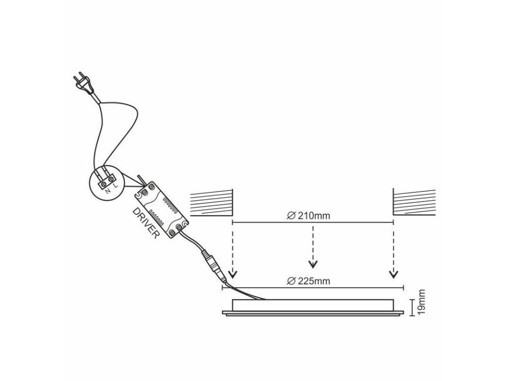 Panel je bezúdržbový a dodávaný s pružinkami, ktoré slúžia na uchytenie panelu napríklad do sádrokartónových stropov. Je potrebné urobiť montážny otvor s priemerom 210 mm.