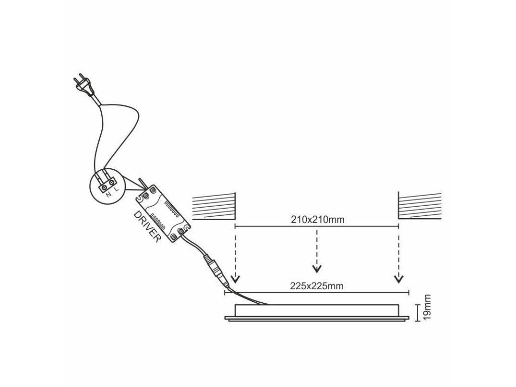 Panel je bezúdržbový a dodávaný s pružinkami, ktoré slúžia na uchytenie panelu napríklad do sádrokartónových stropov. Je potrebné urobiť montážny otvor 210x210 mm.