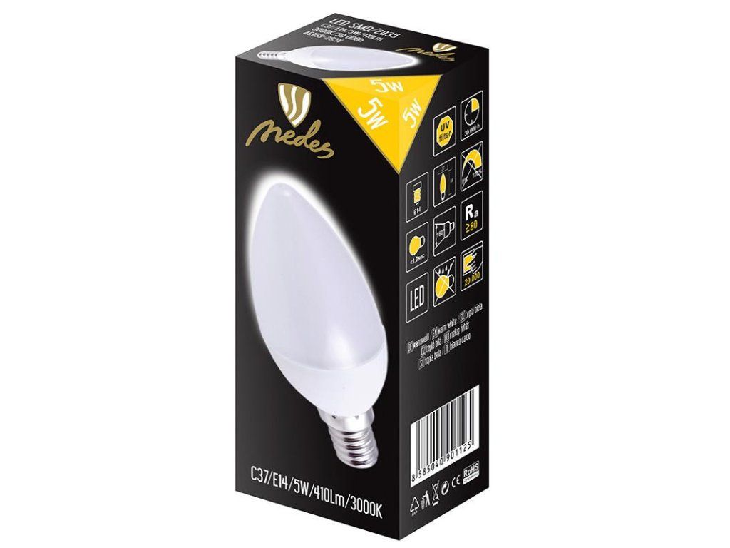 LED žiarovka 5W - C37 / E14 / SMD / 3000K - ZLS712