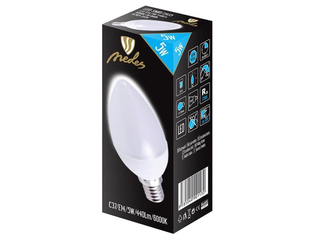 LED žiarovka 5W - C37 / E14 / SMD / 6500K - ZLS702