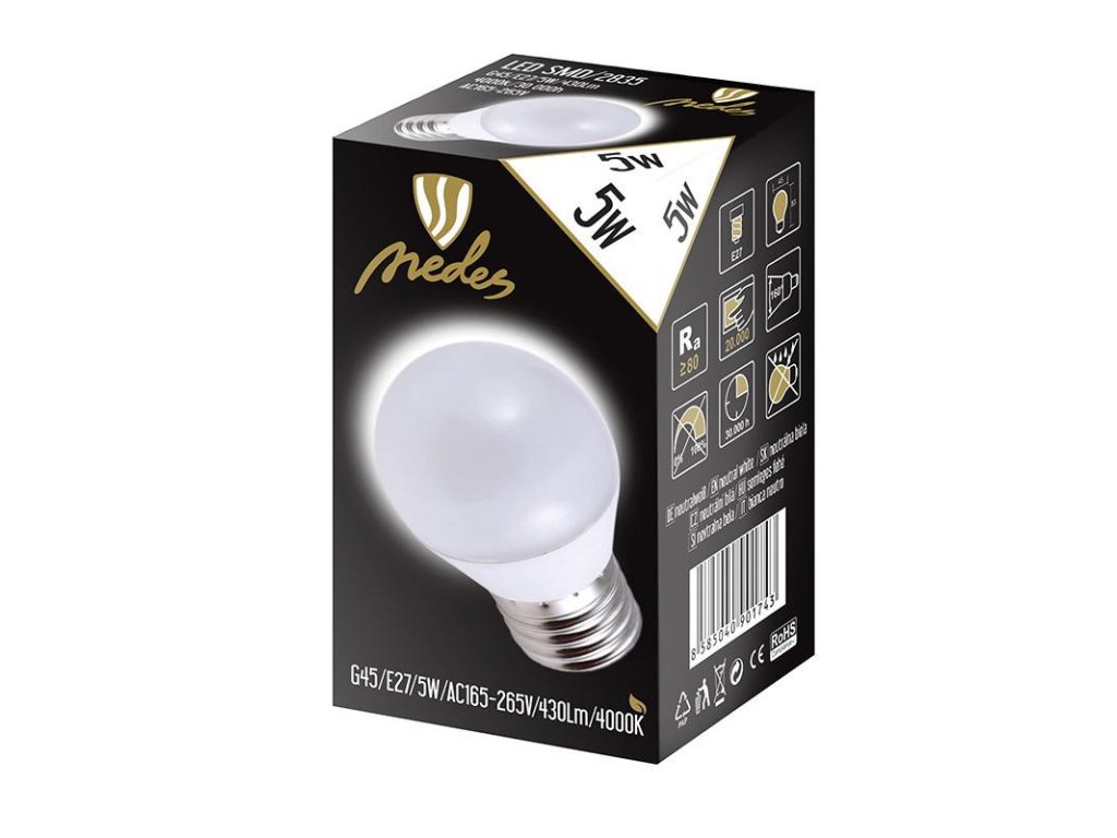 LED žiarovka 5W - G45 / E27 / SMD / 4000K - ZLS827