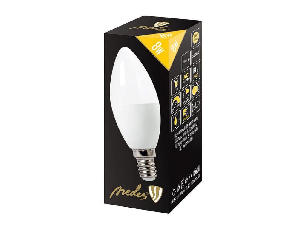 LED žiarovka 8W - C37 / E14 / SMD / 3000K - ZLS714