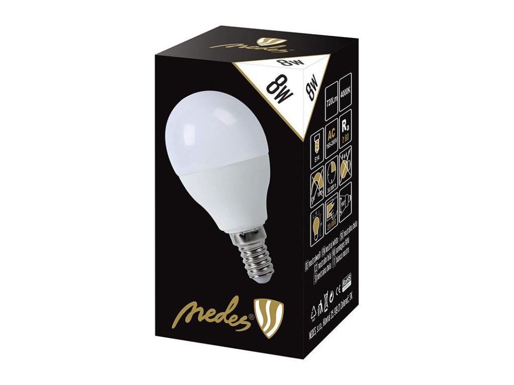 LED žiarovka ZLS824 značky NEDES je úsporná žiarovka so spotrebou 8W, svietivosťou 720Lm, s päticou E14.