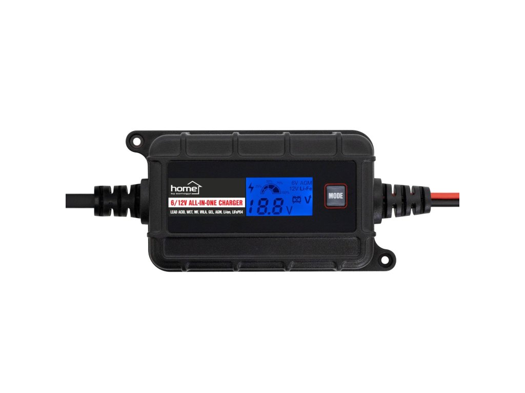 • pre 6 V a 12 V akumulátory • pre tradičné olovené a uzavreté, bezúdržbové gélové typy alebo pre typy so sklenenými vláknami a aj pre najnovšie Li-ion a LiFePO4 akumulátory • manuálna voľba typu • automatické SMART nabíjacie programy • nízkoprúdové nabíjanie šetriace akumulátor (2 A) • údržba, servis, regeneračné nabíjanie • zisťuje sulfatáciu a vrstvenie kyseliny, potom obnoví stratenú kapacitu pri 12 V olovených typoch • pamäť v prípade výpadku napájania • s vymeniteľným nabíjacím konektorom (štipec alebo prstenec) • prehľadný LCD displej s voltmetrom • vysoká ochrana proti prachu a vode: IP65 • ochrana proti opačnej polarite • ochrana proti skratu • ochrana proti preťaženiu • ochrana proti prehriatiu • ochrana proti zlyhaniu batérie • ochrana proti prekročeniu časového limitu • napájací zdroj so sieťovým pripojovacím káblom • rozmery: 150 x 42 x 65 mmDodatočné parametre