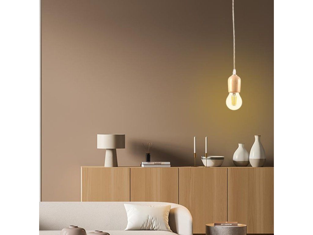 Drevená objímka značky NEDES, je určená pre žiarovky resp. filamenty s päticou E27, s výkonom max. 60W.