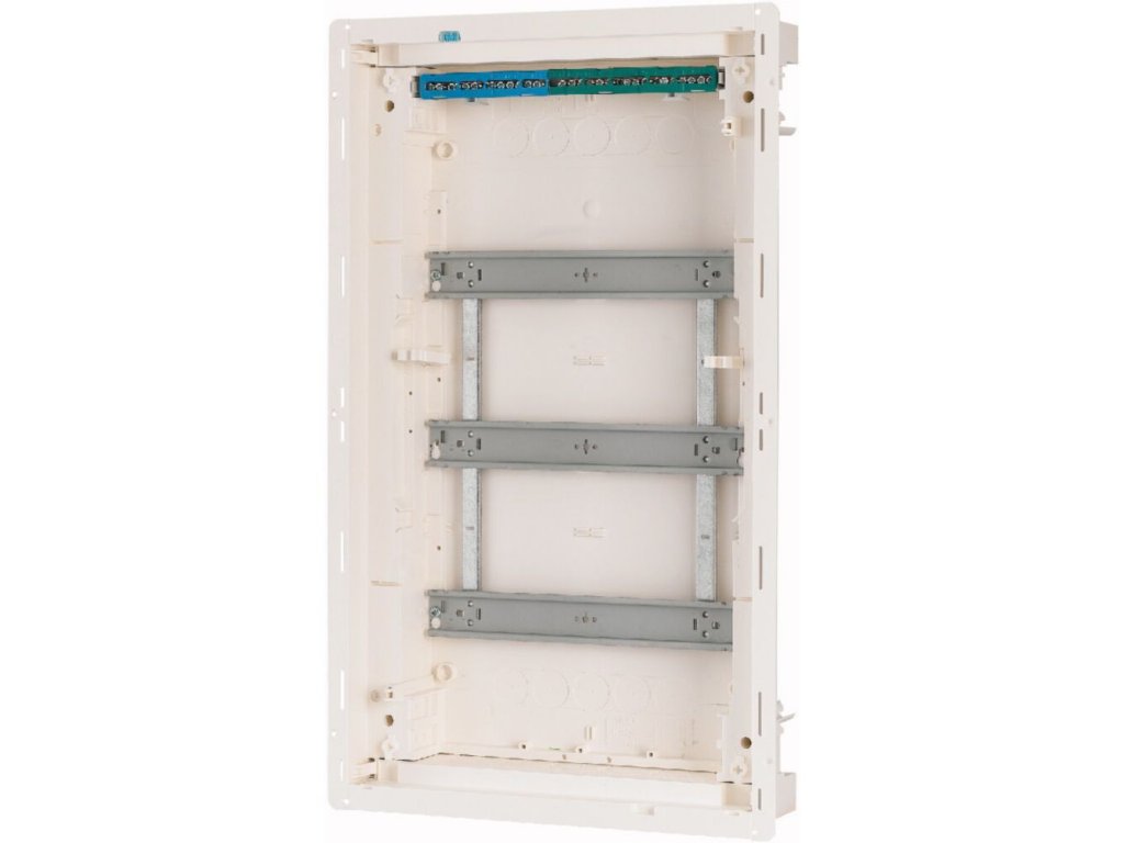 Rozvodnica zapustená Eaton 178818 KLV-36UPS-F, 3-radová, 36+6 modulov, stupeň krytia IP30. Plné dvierka z oceľového plechu. Rozmery 315 x 559 x 87,5 mm. Biela farba.Dodatočné parametre