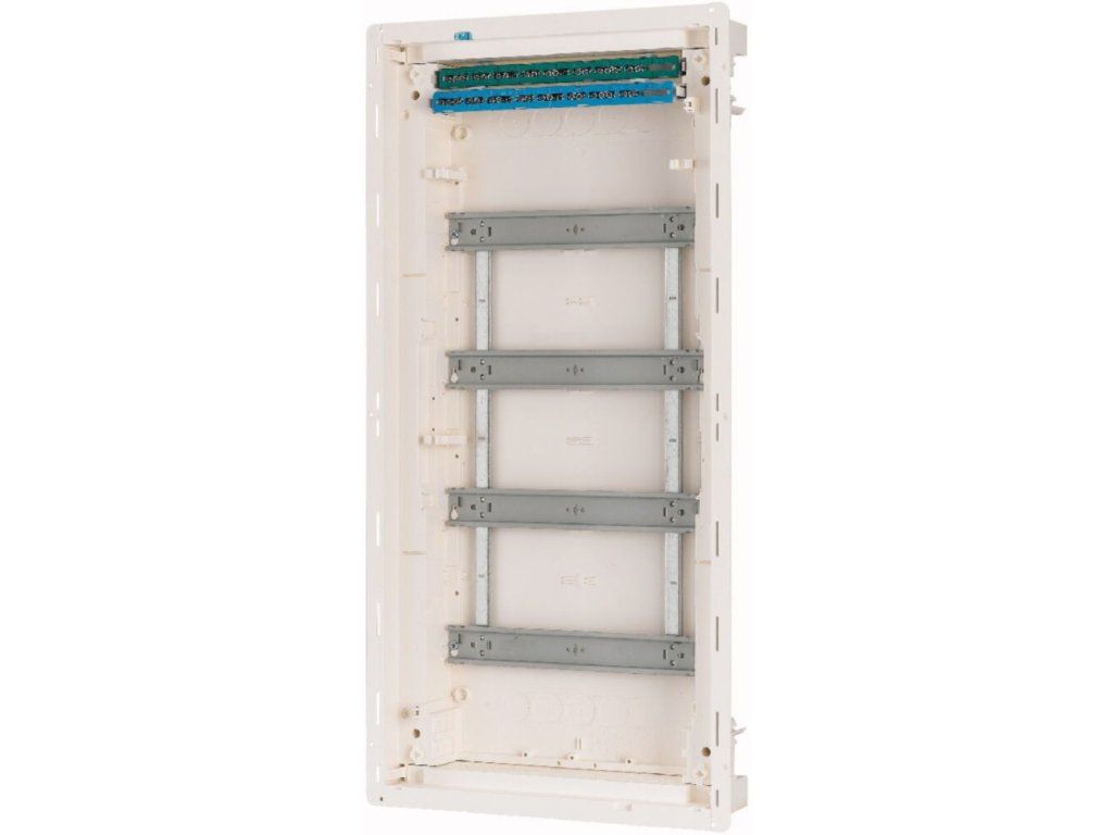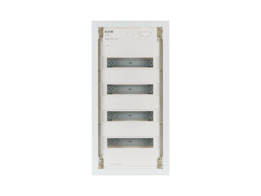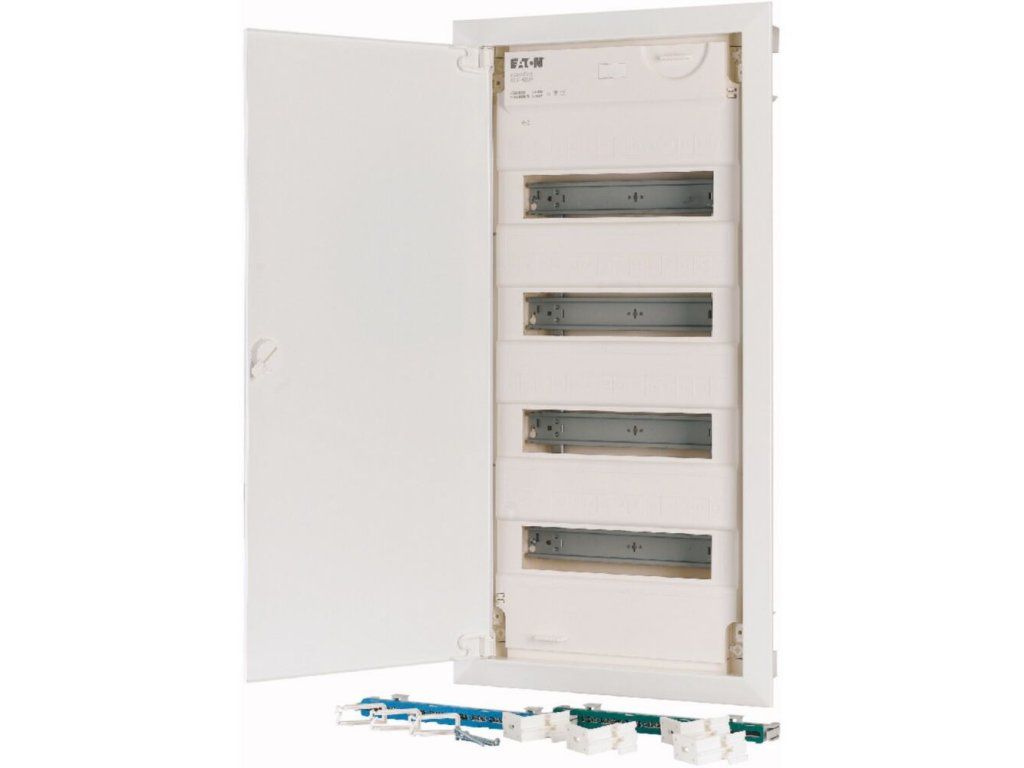 Rozvodnica zapustená Eaton 178820 KLV-48UPS-F, 4-radová, 48+8 modulov, stupeň krytia IP30. Plné dvierka z oceľového plechu. Rozmery 315 x 684 x 87,5 mm. Biela farba.Dodatočné parametre