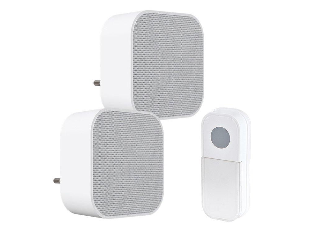 Táto sada bezdrôtových zvončekov je spoľahlivé a cenovo dostupné riešenie pre byty, domy alebo menšie prevádzky. Oba prijímače sú spárované s tlačidlom a zvyšujú pokrytie signálom, napr. jeden na prízemí a druhý na poschodí domu, či vo vzdialenejšej miestnosti. Dosah až 180 metrov v otvorenom priestore zaisťuje spoľahlivú funkciu aj pri väčších vzdialenostiach. Tlačidlo je napájané batériou a ľahko sa inštaluje na dvere či stenu. K dispozícii je výber z 36 melódií a možnosť nastavenia 4 úrovní hlasitosti, takže si zvonenie ľahko prispôsobíte podľa vlastných potrieb. Vďaka funkcii „learning code“ je možné spárovať viac zvončekov alebo tlačidiel a zároveň eliminovať rušenie ostatnými zvončekmi v okolí. Biele prevedenie s jemnou štruktúrou na čelnej strane imituje vzhľad textílie, čo dodáva zvončeku tradičný a domácky charakter. Dizajn je jednoduchý, funkčný a vhodný pre užívateľov, ktorí hľadajú klasické a nenápadné riešenie na každodenné použitie. sada 2x prijímač, 1x tlačidlo dizajn klasickej látky na prednej strane zvončeka 36 voliteľných melódií funkcia" Learning code "umožňuje spárovanie viac zvončekov alebo tlačidiel do jednej skupiny k jednému zvončeku môže byť spárované max. 8 tlačidiel jedno tlačidlo môže byť spárované s max. 15 zvončeky, na každom zvončeku môže byť nastavená iná melódia klasický vzhľad látky na prednej strane zvončeka LED indikátor zvonenia na zvončeku aj tlačidle tlačidlo s krytom na menovku, vodotesná ochrana IP44 uchytenie tlačidla pomocou montážnych otvorov alebo samolepiacej podložky náhradné tlačidlo Solight č. 1L74TDodatočné parametre