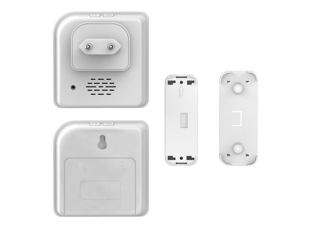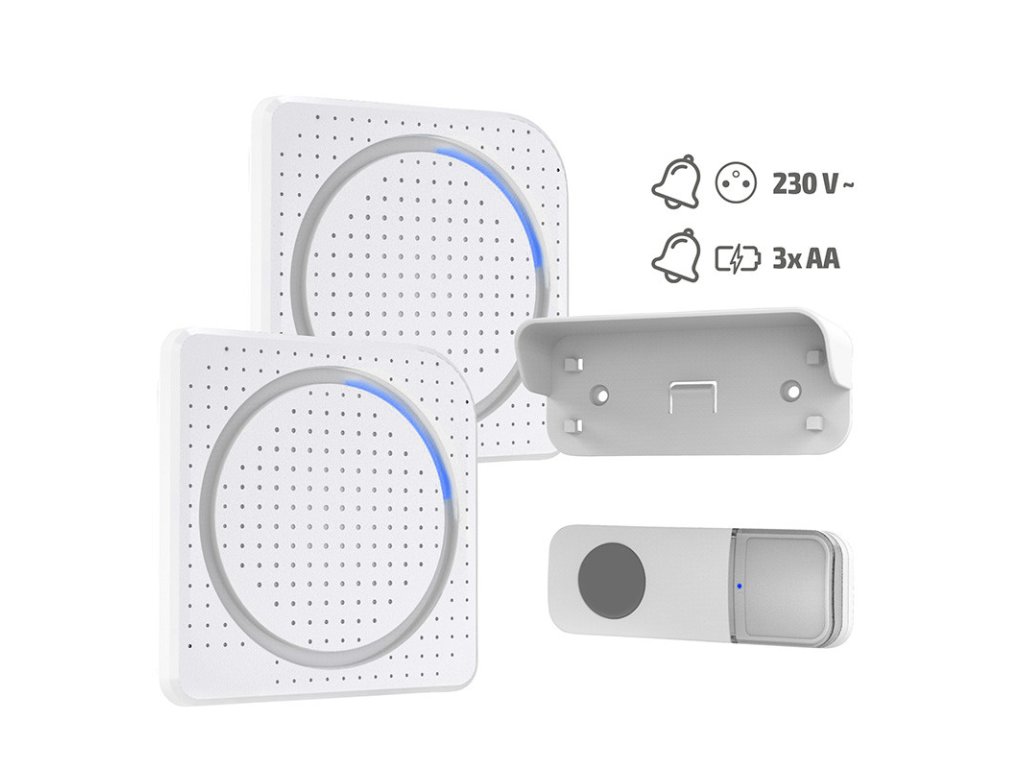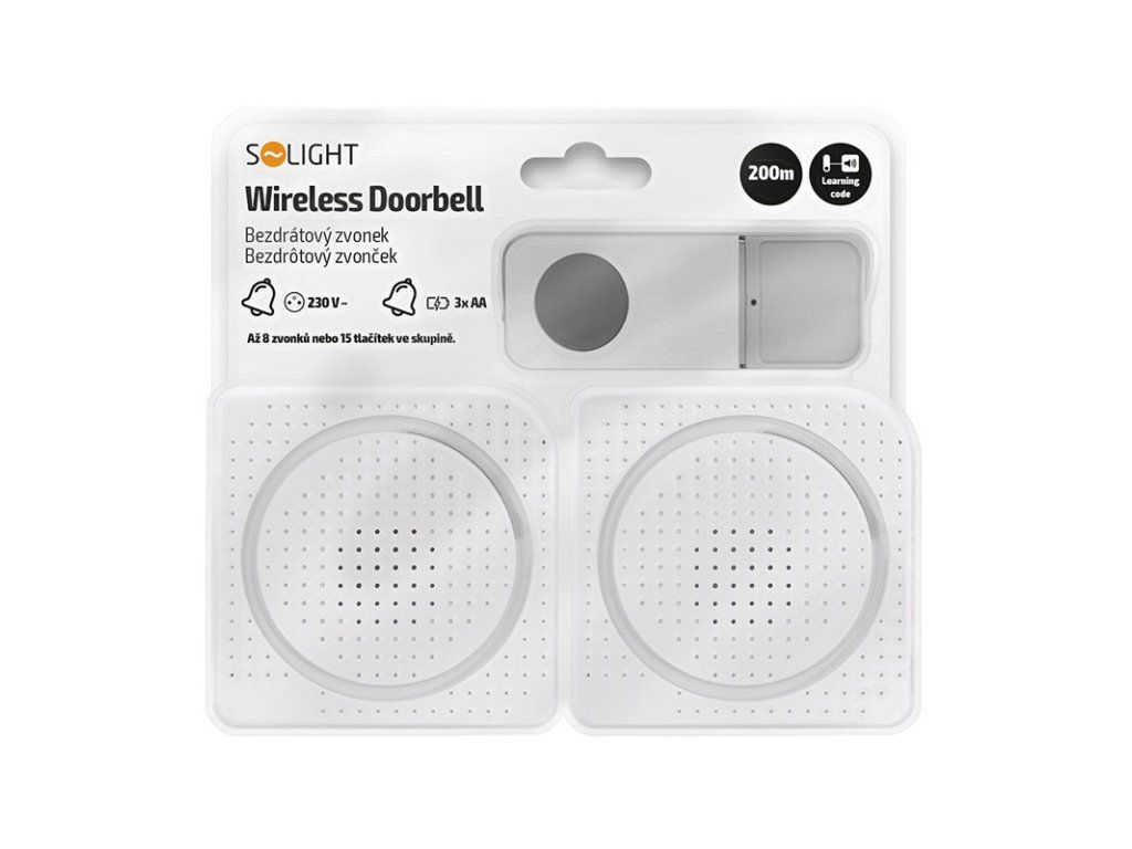 sada 2x prijímač, 1x tlačidlo jeden zvonček zapojený do zásuvky a druhý prenosný na batérie. využitie v domácnostiach - napr. v zásuvke doma a prenosný na záhradu využitie v komerčných priestoroch - napr. V zásuvke v kancelárii a prenosný do skladu funkcia" Learning code "umožňuje spárovanie niekoľkých zvončekov alebo tlačidiel do jednej skupiny k jednému zvončeku môže byť spárované max. 15 tlačidiel jedno tlačidlo môže byť spárované s max. 8 zvončeky, na každom zvončeku môže byť nastavená iná melódia 36 voliteľných melódií LED indikátor zvonenia na zvončeku aj tlačidle tlačidlo s krytom na menovku a so strieškou proti daždi vodotesná ochrana tlačidla IP56 uchytenie tlačidla pomocou montážnych otvorov alebo samolepiacej podložky náhradné tlačidlo Solight č. 1L67TDodatočné parametre