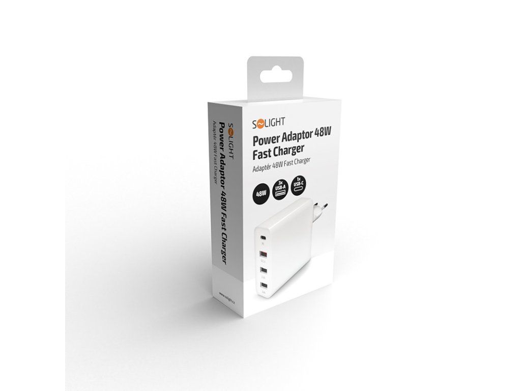 Solight adaptér 3+1, 48W, QC3.0+PD, 3x USB-A, 1x USB-C