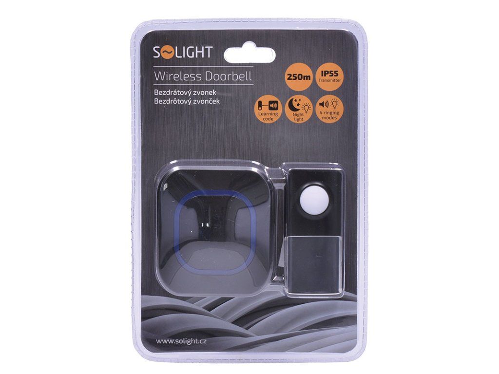 Solight bezdrôtový zvonček, do zásuvky, 250m, čierny, learning code