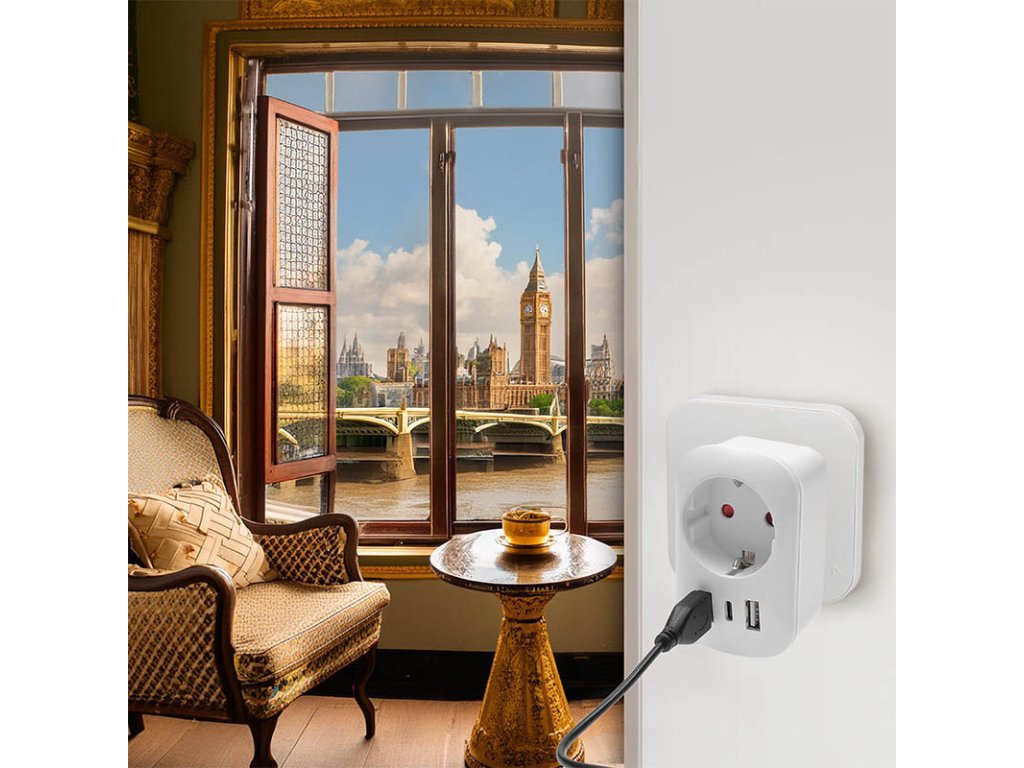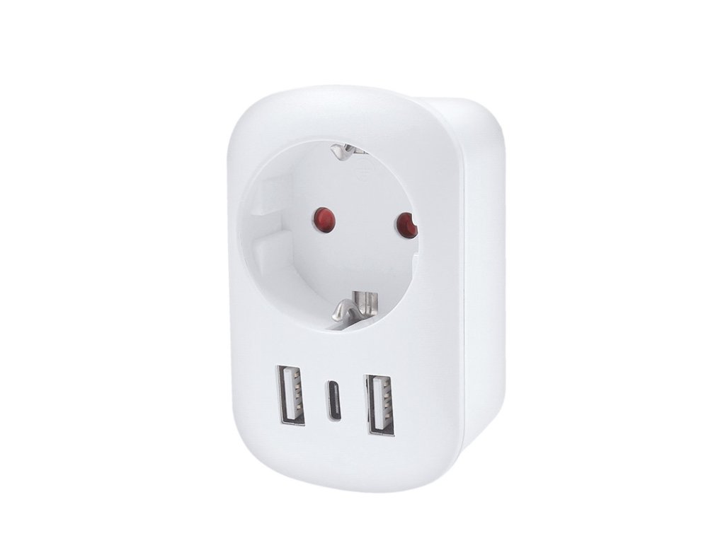 Adaptér umožňuje bezpečné použitie európskych zariadení v zásuvkách Spojeného kráľovstva a krajinách s UK štandardom. Pripojí uzemnené aj neuzemnené vidlice prívodných káblov, bez problémov zapojíte všetko od notebookov až po fény. Vstavaná USB nabíjačka nabíja telefón či tablet bez nutnosti odpájať prívodnú šnúru z hlavnej zásuvky. Patentovaná konštrukcia s ergonomickým tvarom zaisťuje jednoduché používanie. Adaptér je vybavený detskými poistkami a spĺňa najvyššie bezpečnostné štandardy. Vďaka nízkej hmotnosti nezaberie v batožine takmer žiadne miesto. Ideálnym spoločník pre všetkých cestovateľov, ktorí chcú mať istotu, že svoje zariadenia môžu používať bez obmedzenia. Švajčiarska kvalita a jednoduché použitie robia z tohto adaptéra perfektného parťáka na cesty. cestovný adaptér s uzemnením a USB nabíjačkou, max. 13A výhodné spojenie dvoch zariadení v jednom pre obyvateľov Európy navštevujúcich Anglicko a krajiny s UK štandardom, zásuvky typu G Schuko uzemnenie zásuvky, použiteľné pre univerzálne vidlice typu E/F vhodné aj pre spotrebiče s neuzemnenou 2-kolíkovou vidlicou typu C ochranné detské poistky v zásuvke bezpečná konštrukcia, maximálna ochrana užívateľa adaptér nemění napětí ani jiné elektrické parametry 100 - 250V /max. 13A, max. 2990W /230V 2x USB-A + 1x USB-C, DC 5V - max. 2,4 A, max. 12W adaptér nemení napätie ani iné elektrické parametreDodatočné parametre