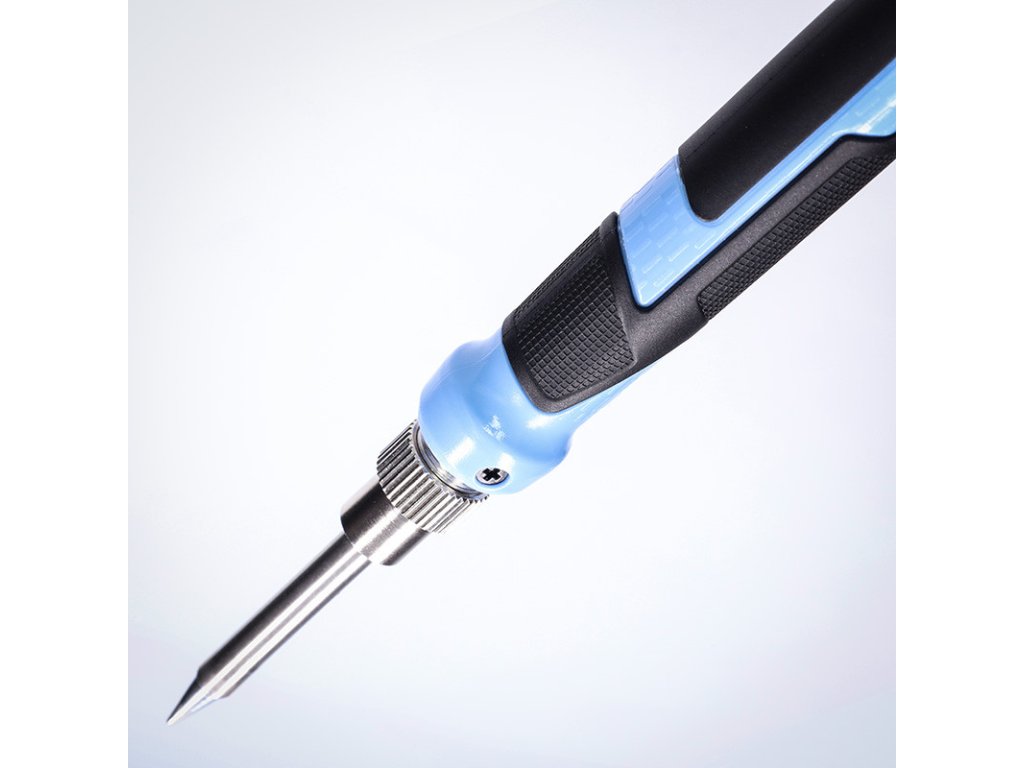 LED displej: Dvojitý ukazovateľ zobrazujúci nastavenú a aktuálnu teplotu. rýchle zahriatie: Pripravené na použitie počas 8 sekúnd. výkon: 70 W rozsah teploty: 160 °C – 480 °C automatický spánkový režim: Po 10 minútach nečinnosti zníži teplotu na 200 °C. nastavenie teploty: Možnosť prednastavenia obľúbených hodnôt pomocou tlačidla CH. kalibrácia teploty: Presné doladenie pomocou jednoduchého režimu ±10 °C. ergonomický dizajn: Kompaktná a ľahká spájkovačka pre ľahkú manipuláciu. kábel: Flexibilný silikónový kábel odolný voči teplu. stojan na spájku: Bezpečné odkladanie počas používania. čistiaca hubka: Na ľahké čistenie hrotu počas práce. bezpečnostné funkcie: Ochrana pred prehriatím, izolovaný kábel. použitie iba v interiéri: Nie je určené pre vonkajšie prostredie. výstupné napätie: 20 V vysoko kvalitná povrchová úprava ohrievača napájanie 220–240V, 50 Hz dĺžka napájacieho kábla 1,35mDodatočné parametre