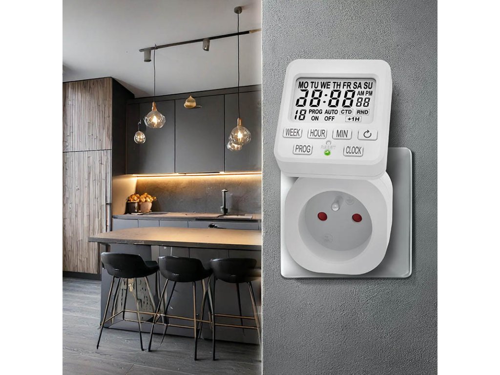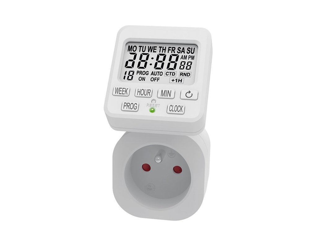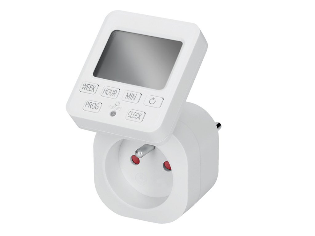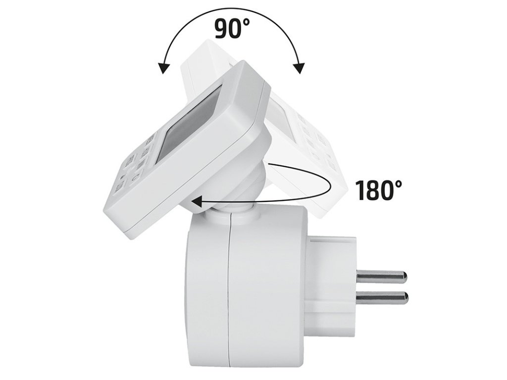 prehľadný LCD displej, ktorý je možné natočiť v mnohých smeroch pre lepšie čítanie hodnôt18 denných spínacích cyklov15 skupín na nastavenie rôznych dníodpočtový časovačdetské poistkypamäť pre uchvanie nastavených hodnôtpresnosť nastavenia 1 min230V/16A (3680W)Dodatočné parametre