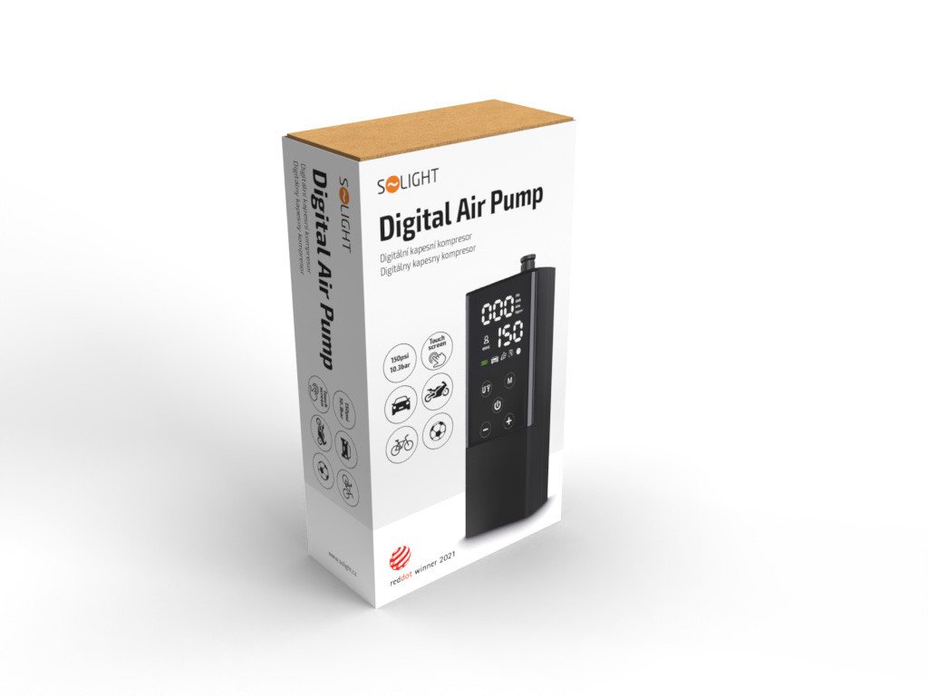 Digitálny kompresor Solight vám umožní ľahko a bez námahy nafúknuť pneumatiky auta, motorky, bicykla, kolobežky alebo nafúknuť loptu či iné nafukovacie výrobky. Je vybavená svetlom LED, takže vás nesklame ani v tme. Samozrejmosťou je veľký prehľadný digitálny displej. V ňom najprv vyberiete, čo chcete nafúknuť. Po výbere sa zobrazí prednastavená úroveň inflácie. Túto hodnotu môžete samozrejme upraviť pomocou tlačidiel +/-. Súčasťou balenia je aj niekoľko nástavcov na nafukovanie všetkých druhov nafukovacích predmetov - redukcia na galuskový ventil (presta), guľová ihla a nástavec na rôzne gumové nafukovacie predmety. Nástavec pre automatický ventil (schrader) je predvolený spôsob, ostatné nástavce sa naň naskrutkujú. - 41 futbalové loptičky (1 loptička za približne 1 minútu; 0 psi až 12 psi) - 8 cyklistické pneumatiky (1 pneumatika za približne 3 minúty; 0 psi až 120 psi) - 6 motocyklové pneumatiky (1 pneumatika na približne 6 minút; 0 psi až 2,4 psi) - 5 pneumatiky osobných automobilov (1 pneumatika za približne 6 minút; 2,0 bar až 2,5 bar) - kompaktný kompresor - tlak do 150 psi - podsvietený LED displej - kompatibilný so všetkými ventilmi - Nabíjanie cez USB-C - kompresor - látkový obal - koncové uzávery - nabíjací kábel - užívateľská príručkaDodatočné parametre