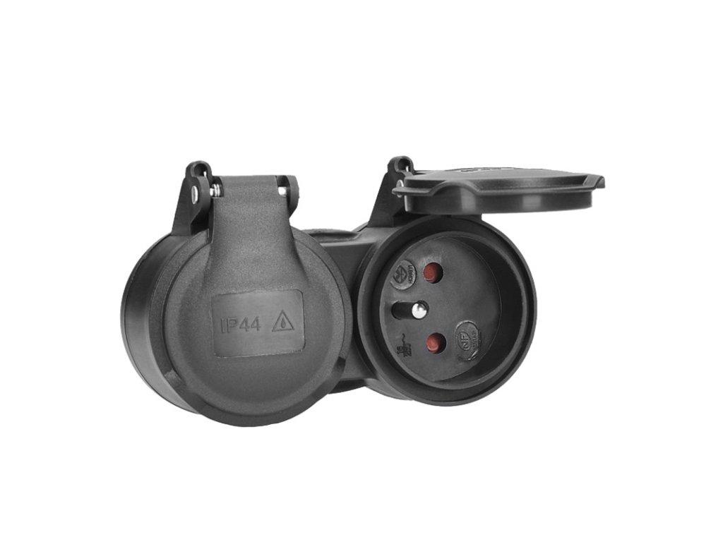 Solight dvojzásuvka do vlhka, IP44, čierna