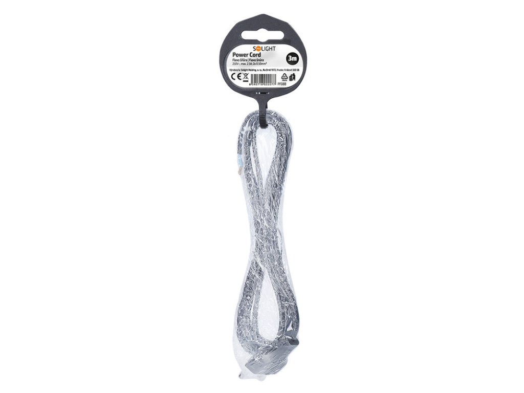 Prívodný PVC kábel s voľnými vodičmi umožňuje pripojenie priamo do spotrebiča alebo k pohyblivej zásuvke. Vodiče sú zo splietaných medených drôtikov s medenými krimpovanými koncovkami, uľahčujúce montáž do svorkovnice. Určené pre vnútorné použitie, stupeň krytia IP20. plochá vidlicaDodatočné parametre