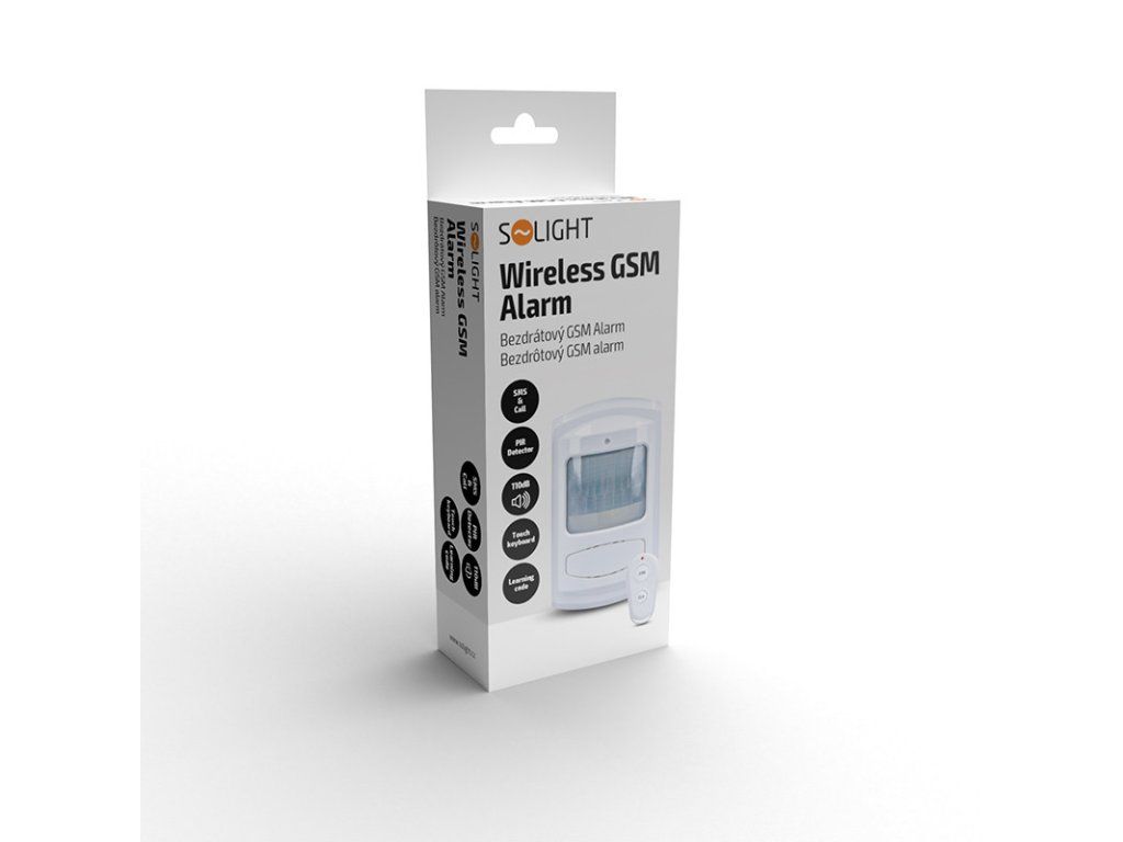 Bezdrôtový GSM alarm pri narušení strážených priestorov zavolá a odošle SMS správu až na 3 tel.čísla. Vhodný pre základné zabezpečenie malých, napr. rekreačných objektov, kde nie je nutné poznať kadiaľ, ale to, že cudzia osoba vnikla dovnútra možnosť bezdrôtového pripojenia doplnkových čidiel a sirén (až 600) sada hlavná GSM jednotka s PIR čidlom + diaľkový ovládač integrované PIR čidlo a siréna siréna 110dB, dá sa vypnúť (tichý režim) dotyková klávesnica kryt klávesnice a batérie zabezpečené skrutkami LED indikátor funkcií držiak na stenu súčasťou balenia, stojí na vodorovnej plocheDodatočné parametre