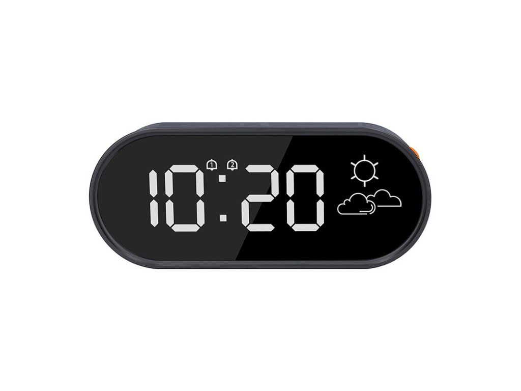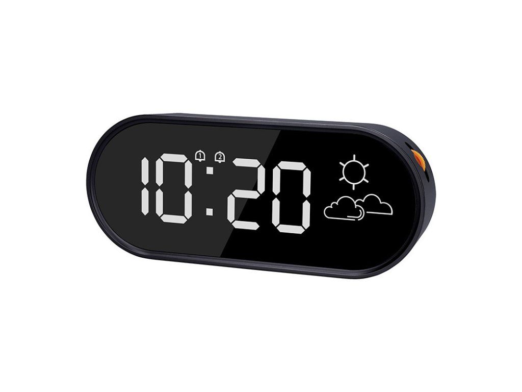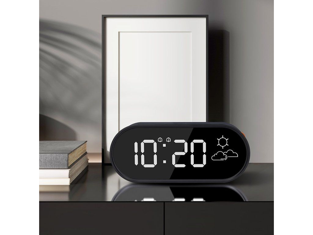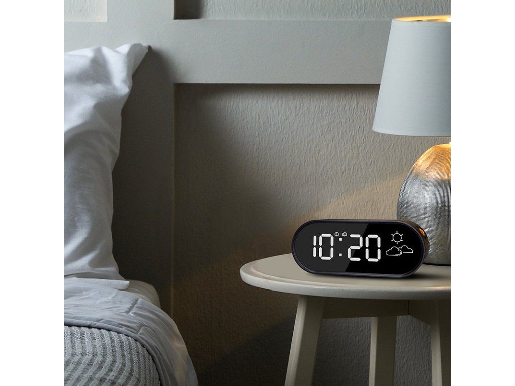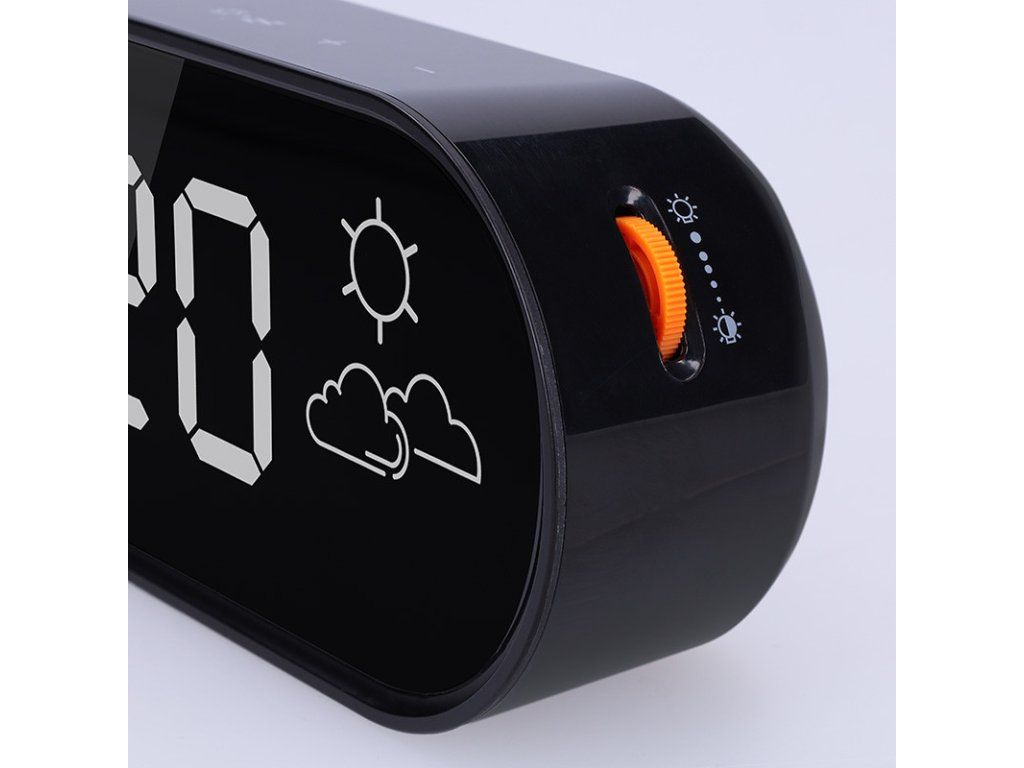 Tento moderný digitálny budík s funkciou predpovede počasia na základe zmien atmosférického tlaku kombinuje štýlový dizajn s dotykovým ovládaním. Displej umožňuje zobrazenie času alebo striedanie času a teploty, ktoré možno prepínať medzi °C/°F. Dvojitý budík s funkciou odloženia budenia zabezpečuje pohodlné budenie. Jas displeja možno nastaviť pomocou otočného voliča. Praktický port USB umožňuje nabíjanie iných zariadení. hodiny s funkciou predpovede počasia na základe zmien atmosférického tlaku dotykové ovládanie iba čas striedanie času a teploty ovládanie jasu otočným kolieskom dotykové ovládanie dvojitý budík s funkciou odloženia (snooze) zobrazenie teploty v °C alebo °F napájanie USB port pre nabíjanie zariadenia farba čiernaDodatočné parametre