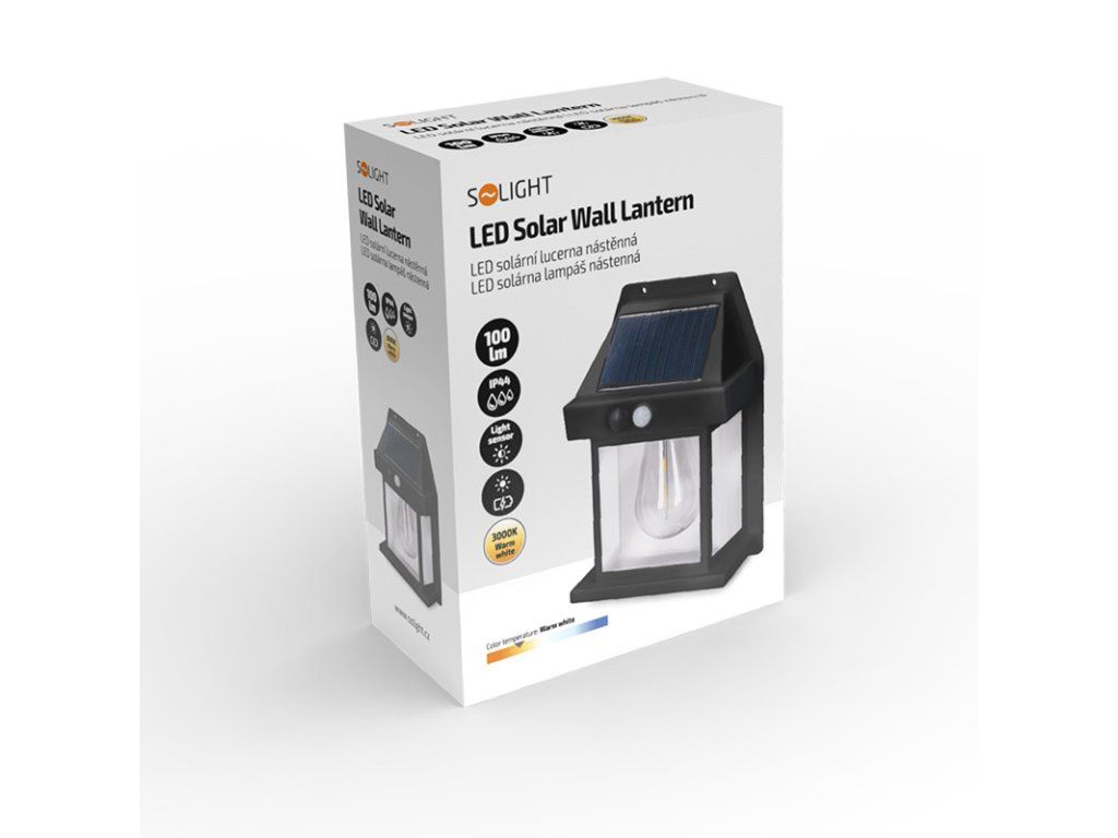 Solight LED solárny lampáš nástenný, teplá biela, 12x17cm, čierna