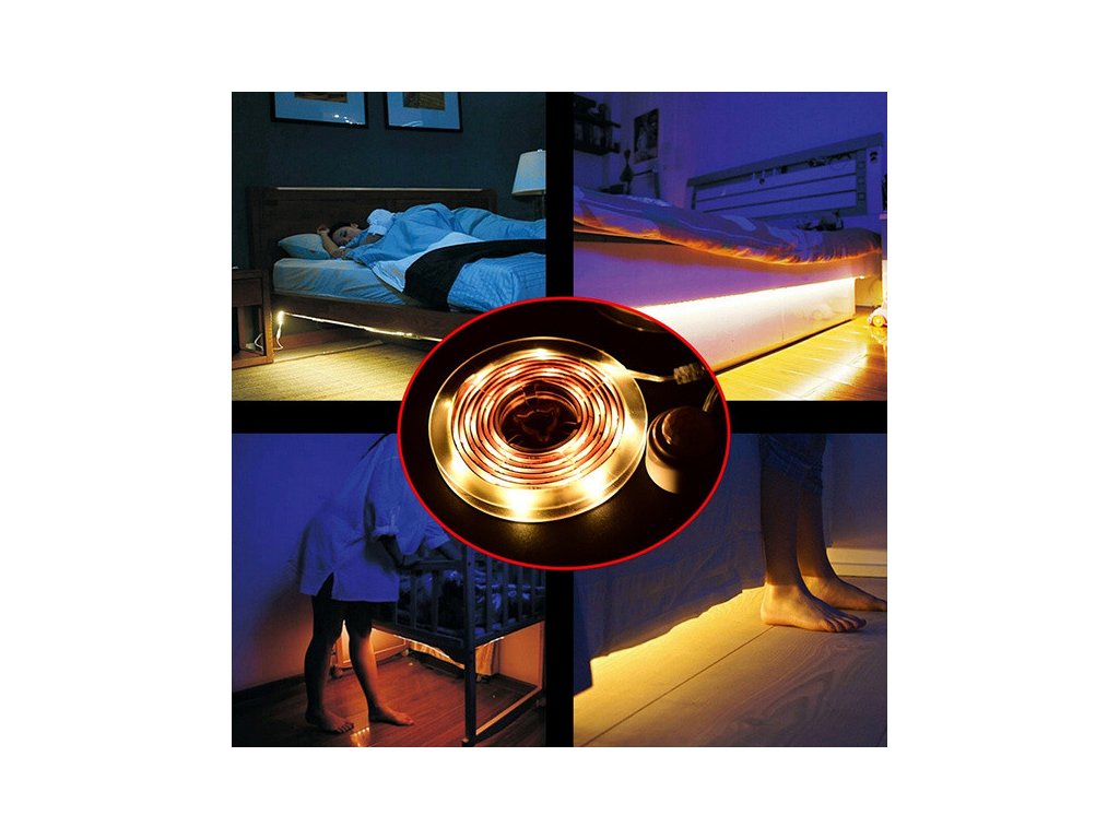 LED pás s pohybovým senzorom. Svetelný sensor reaguje na pohyb v tme. Ideálne pre použitie na podsvietenie postele - ako nočná svetielko, či na inštaláciu do šatníkov a skriní. 30 x SMD 2835 LED doba intenzívneho svietenia cca 3hod. (V závislosti na kvalite batérií) doba používania v režime "Auto" pri priemernom sepnutí 10x denne je cca 50dní (v závislosti na kvalite batérií) krytie IP20 pásik je vysoko flexibilná pásik možno skrátiť podľa potreby obojstranná samolepiaca 3M páska na zadnej straneDodatočné parametre