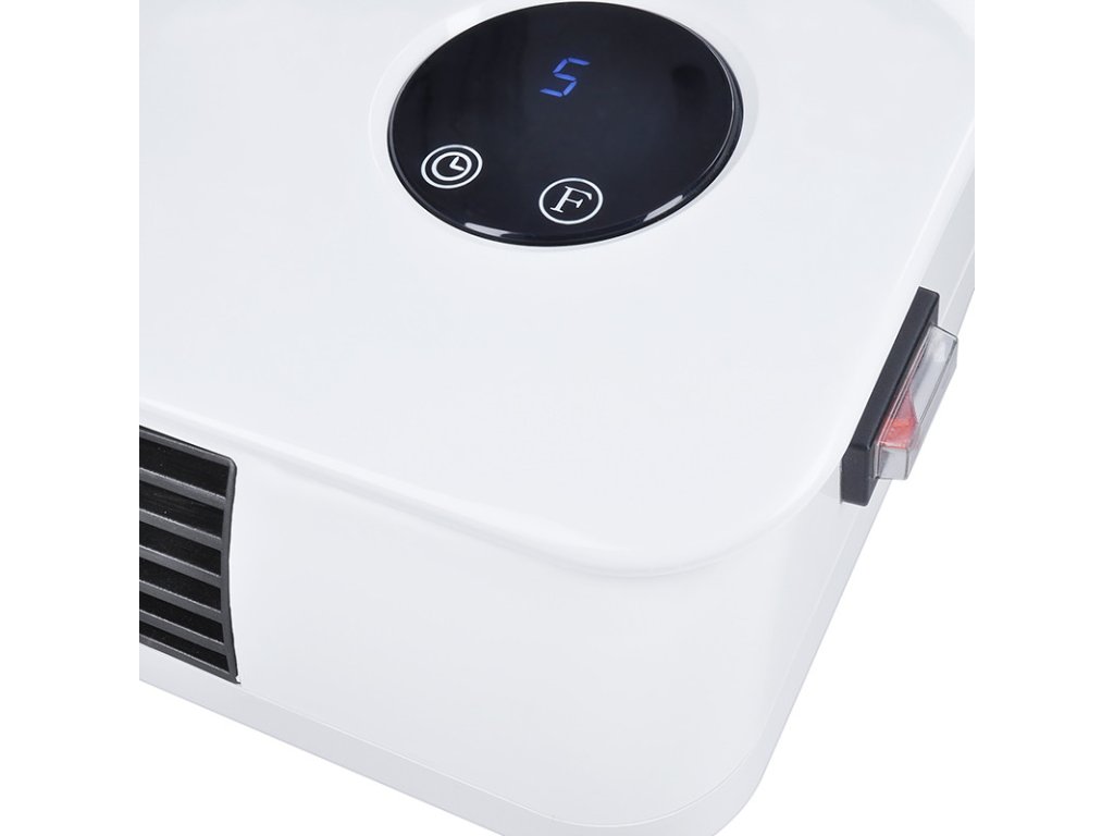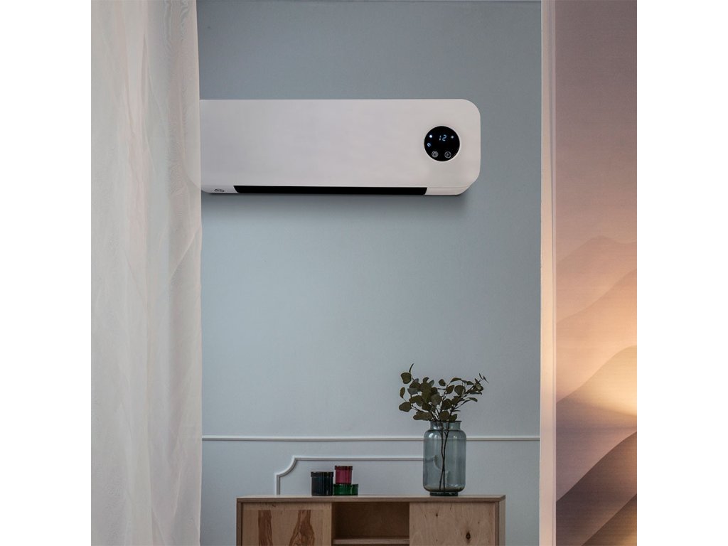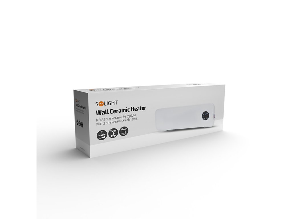 keramický ohrievač v modernom dizajne určené na montáž na stenu vykúri miestnosť do veľkosti 20 m2 krytie IP22, odolné proti vlhkosti 2 stupne výkonu, 1000 W a 2000 W funkcia ventilátora týždenný a 24 hodinový časovač pri náhlom znížení teploty v miestnosti sa automaticky vypne (otvorené okno pre vetranie) LED displej zobrazujúci teplotu diaľkový ovládač ochrana proti prehriatiu napájanie AC 230 V /50 HzDodatočné parametre