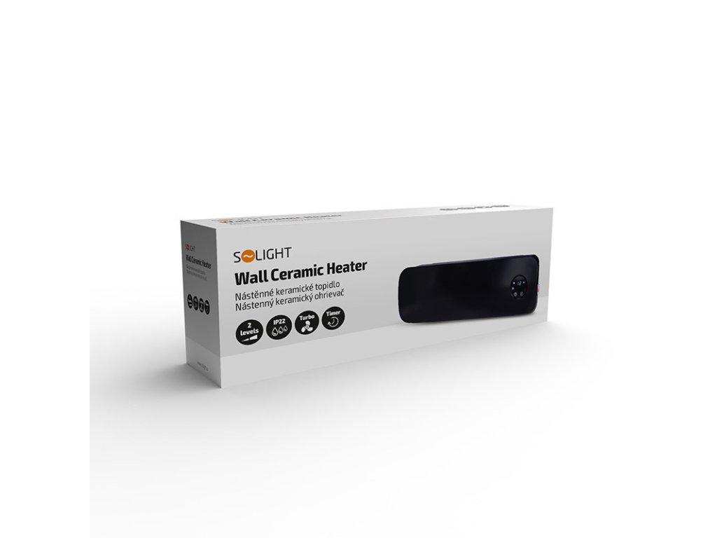 keramický ohrievač v modernom dizajne určené na montáž na stenu vykúri miestnosť do veľkosti 20 m2 krytie IP24, odolné proti vlhkosti 2 stupne výkonu, 1000 W a 2000 W funkcia ventilátora týždenný a 24 hodinový časovač pri náhlom znížení teploty v miestnosti sa automaticky vypne (otvorené okno pre vetranie) LED displej zobrazujúci teplotu diaľkový ovládač ochrana proti prehriatiu napájanie AC 230 V /50 HzDodatočné parametre