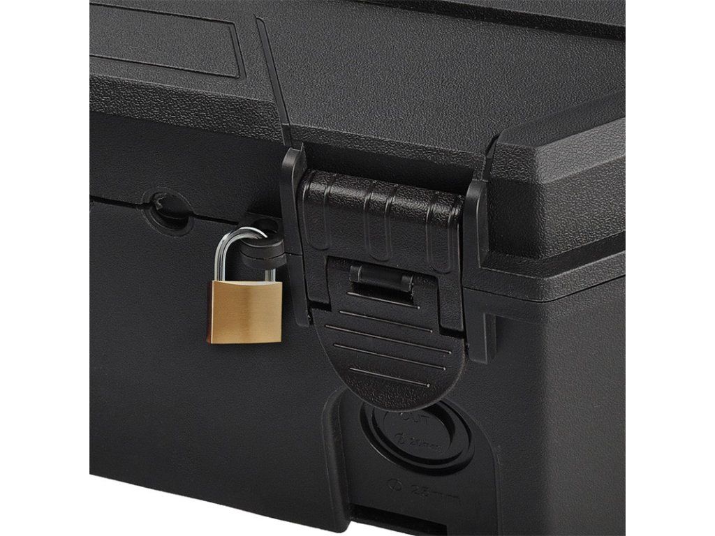 Vodeodolná a prachotesná krabica triedy IP54 je bezpečná ochrana pred poškodením káblových spojení. Uschová predlžovacie prívody, napájanie alebo rozbočenie anténnych a internetových rozvodov, vianočného osvetlenia, časové spínače, apod. Zabraňuje oxidácii konektorov a skratom vlhkom, chráni pred nečistotami. Uzamykateľné veko chráni káblové spoje pred rozpojením alebo zničením cudzími osobami. Možno použiť s elektrickými zariadeniami vo vonkajšom aj vnútornom prostredí. plastový box na ochranu káblových spojení trieda ochrany IP54 5 priechodiek pre kábel, tesniace vložky zabraňujú prenikaniu nečistôt a vlhkosti jeden vstup a štyri výstupy, až štyri káblové spojenia v predlžovacom prívode uzamykateľné veko, priemer otvoru pre visiaci zámok 6mm krabicu je možné zakopať aj pod zem. V takom prípade je potrebné vyvarovať sa miest s tečúcou alebo vzlínajúcou vodou. Výrobok je vodeodoolný, ale nie 100% vodotesný. neodporúčame dlhodobé použitie na slnku, vplyvom UV žiarenia sa menia vlastnosti výrobku. Na dlhodobé použitie vonku chráňte výrobok pred UV žiarením adekvátnym tienením.Dodatočné parametre