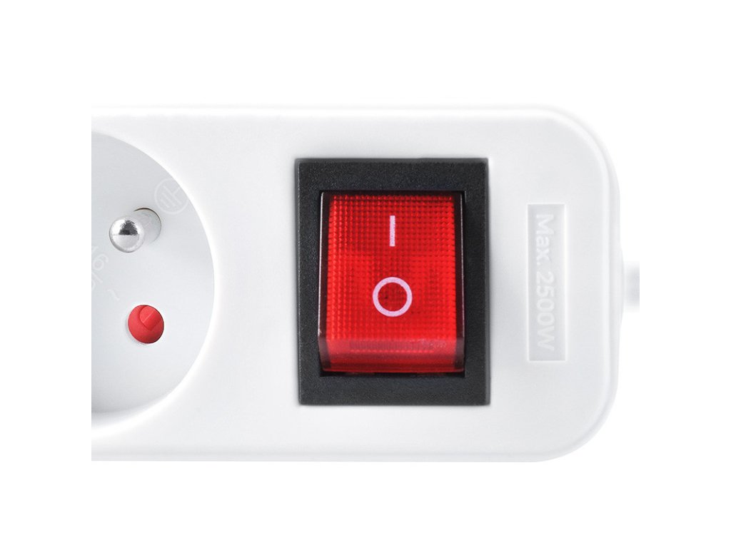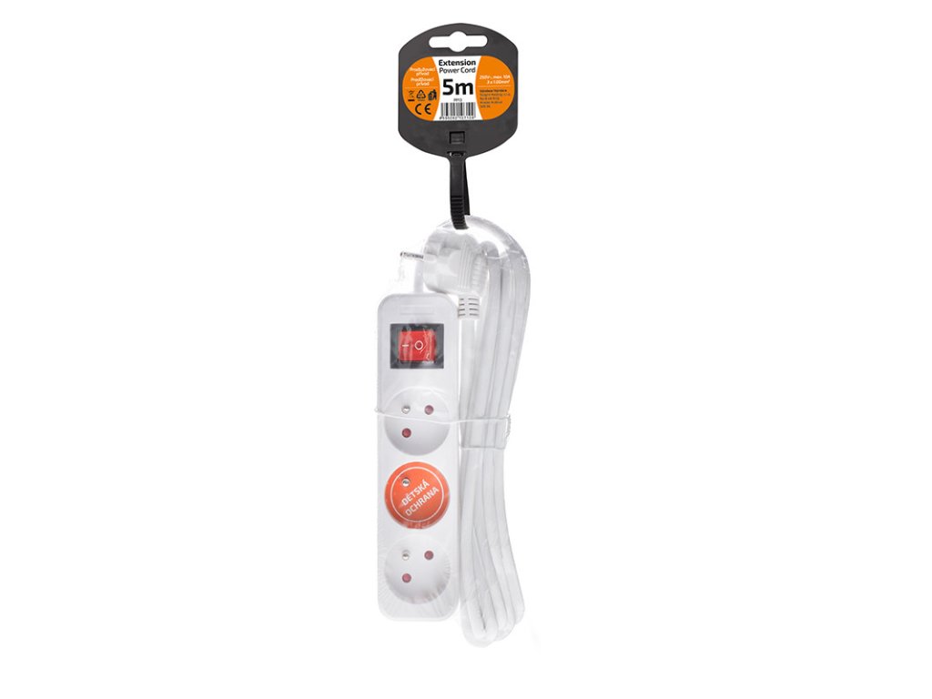 Solight predlžovací prívod, 3 zásuvky, biely, vypínač, 5m