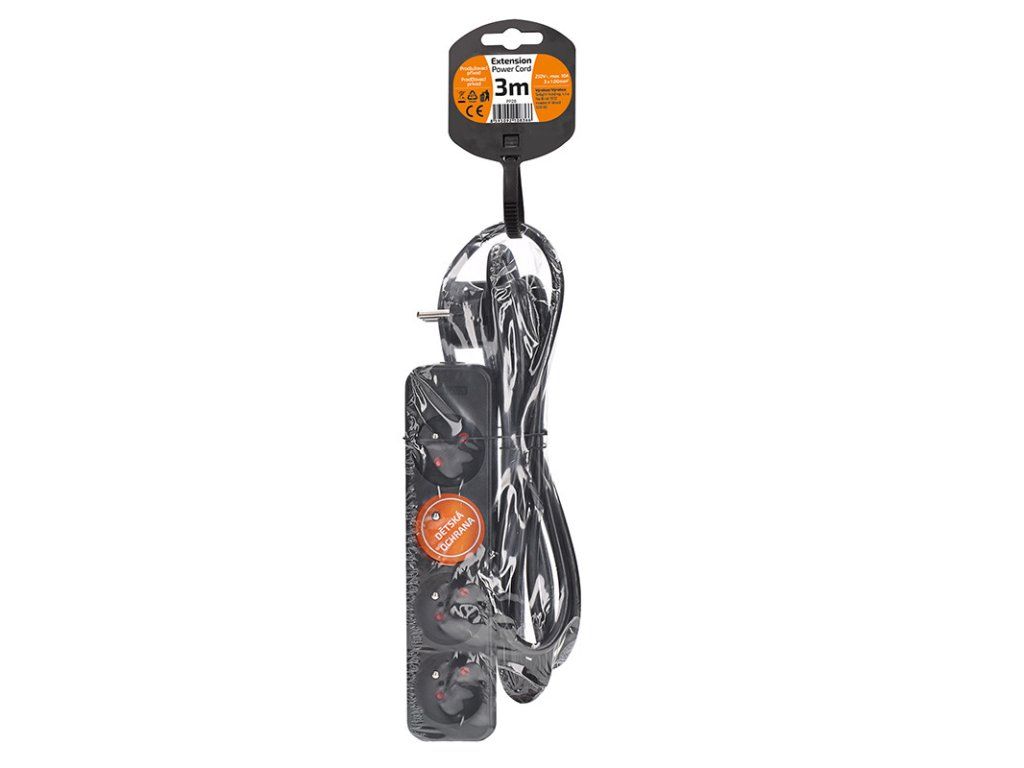 Solight predlžovací prívod, 4 zásuvky, čierny, 3m