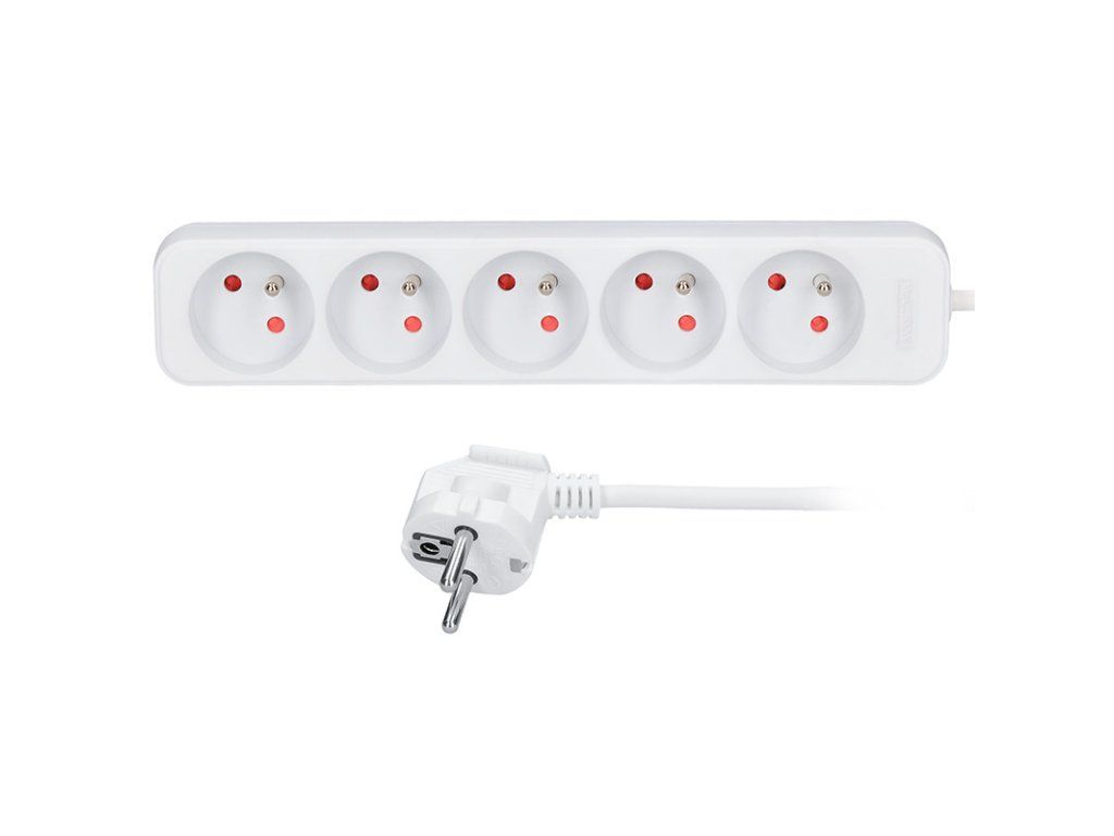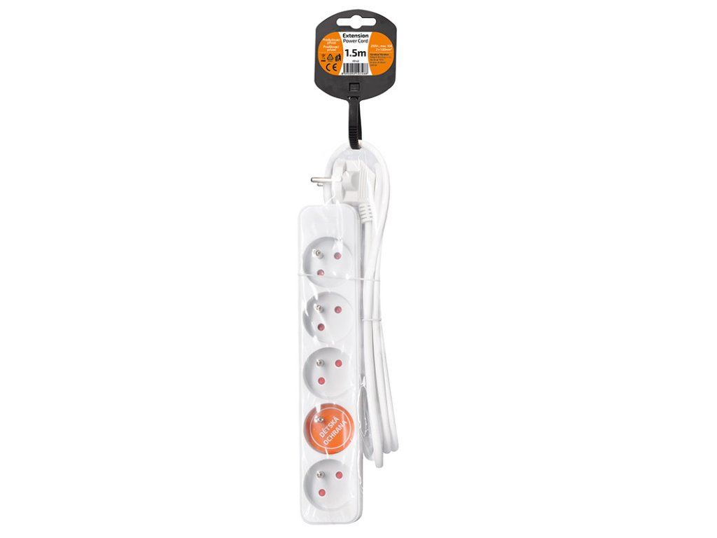 Solight predlžovací prívod, 5 zásuviek, biely, 1,5m