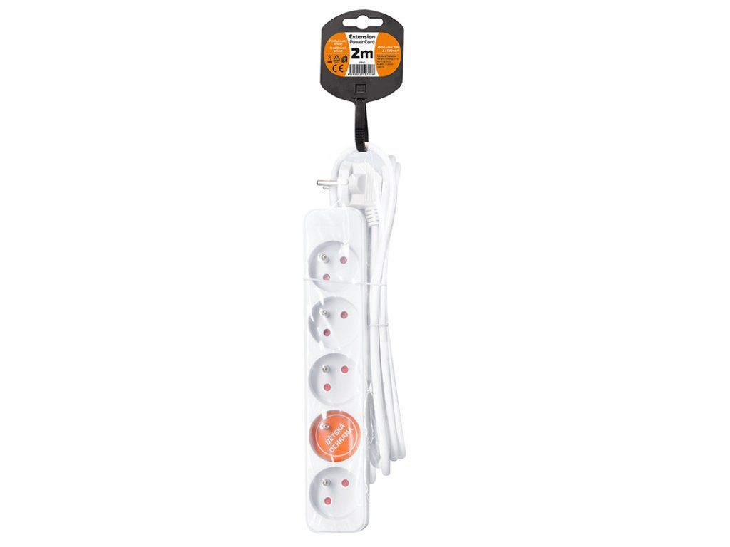 Solight predlžovací prívod, 5 zásuviek, biely, 2m