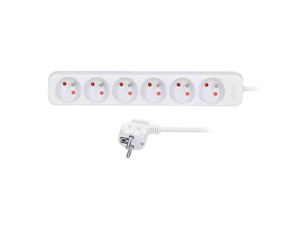 Solight predlžovací prívod, 6 zásuviek, biely, 2m