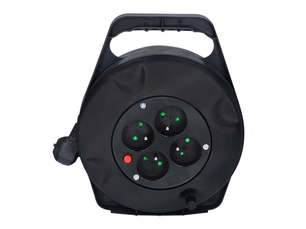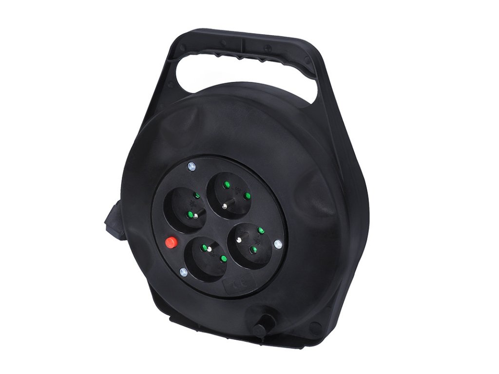 Solight predlžovací prívod na bubne, 4 zásuvky, 10m, čierny kábel, 3x 1.0mm2