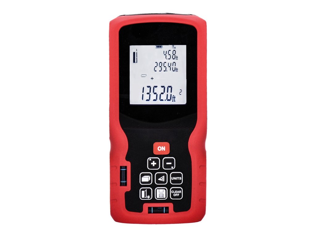 meranie vzdialenosti, výpočet plochy, objemu a meranie pomocou Pytagorovej vety (výpočet dĺžky tretej strany z dvoch známych dĺžok strán) presnosť merania ± 1,5mm teplotný rozsah použitia -10 + 50 ° C podsvietenie displeja horizontálna a vertikálna vodováha pamät pre 20 posledných meraní automatické vypnutie indikátor vybitej batérieDodatočné parametre