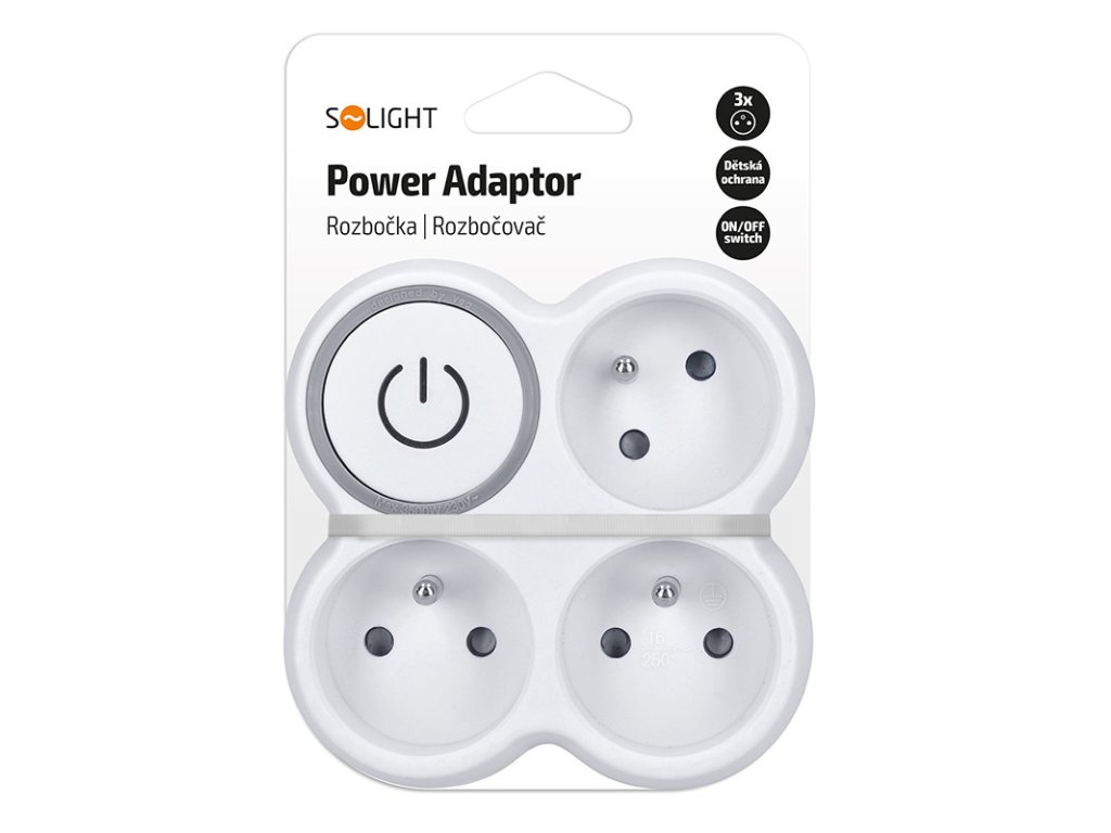 Solight rozbočovač, 3x 10A, biely-sivý, vypínač
