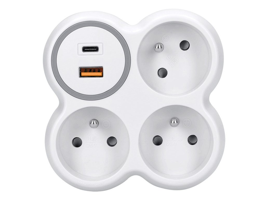 Aj rozbočka môže vyzerať pekne a byť hodnotným doplnkom interiéru. Spracovaná v dizajnovom štúdiu, vyrobená z kvalitných materiálov, s povrchovou úpravou príjemnou na dotyk. Kombinácia krémovo bielej a šedej farby ladí nenápadne s okolím. Táto praktická rozbočka s integrovanou USB nabíjačkou je ideálne riešenie pre domácnosti, kde potrebujete pripojiť viacero zariadení na jednom mieste – napríklad televíziu, set-top box, router a k tomu nabíjať telefóny alebo tablety. USB-A a USB-C porty nabíja aj dve zariadenia súčasne. Power Delivery (PD) technológia výrazne skracuje dobu, počas ktorej musí byť prístroj v nabíjačke. Perfektný pre všetku USB elektroniku a váš čas. Tri zásuvky zvládnu celkovú záťaž až 3680 W a umožnia pripojiť akýkoľvek spotrebič v kuchyni, obývačke, spálni alebo dielni. Vďaka natočeniu hornej zásuvky je možné ľahko manipulovať s prívodnou šnúrou v zásuvke pod ňou. Všetky káble spotrebičov smerujú smerom dole a netrčia rôzne v priestore. Zásuvky sú navyše vybavené detskými poistkami, čo zaisťuje bezpečnú prevádzku aj v domácnostiach s deťmi. Kompaktné prevedenie nezaberie zbytočne miesto. zásuvky 3x 16A max. 3680W, 15A/230V~ pootočená horná zásuvka veľký podsvetlený vypínač USB A+C rýchlonabíjací adaptér, USB-C Power Delivery detské pojistky v zásuvkáchDodatočné parametre
