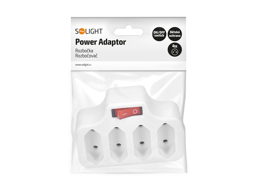 Solight rozbočovač, 4 x 2,5A, biely, vypínač